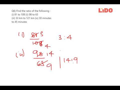 Q6 Find The Ratio Of The Following I 81 To 108 Ii 98 To 63 Iii 33 Km To 121 Km Iv 30 Minutes To 45 M