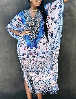 Ailunsnika Ethnic Print Kaftan Dresses For Women V Neck Lace Up Swimsuit Cover Ups Plus Size Beach Caftans At Amazon Women S Clothing Store