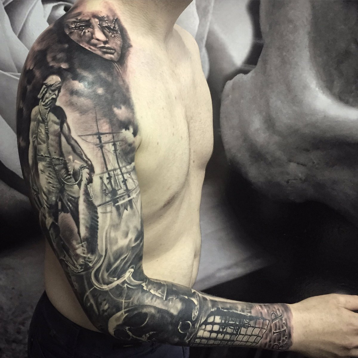 Session 7 Of My Rime Of The Ancient Mariner Tattoo In Memory Of My Brother Done By Cliff Collard Of Arsenal Tattoo In College Station Tx Just One More Visit For Some